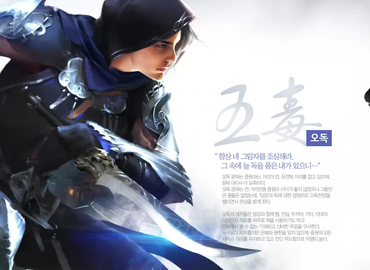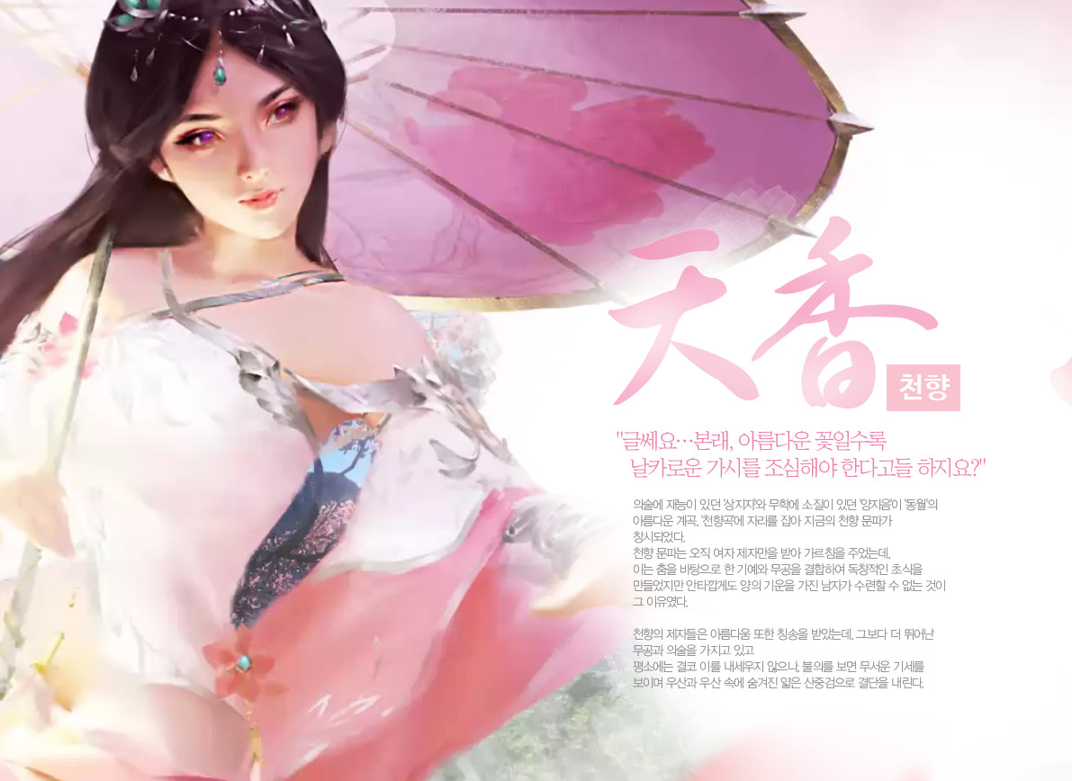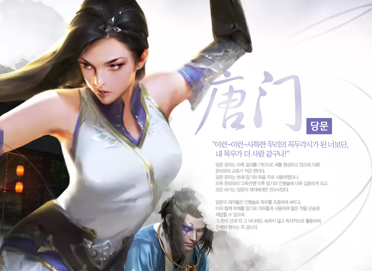 천애명월도가 일반적인 무협지에 등장하는 구파일방, 오대세가의 컨셉을 가지고 있는 무협게임은 아니지만, 게임만의 특징을 가지기 위해 새로운 문협 체계를 세웠다고 보여집니다.