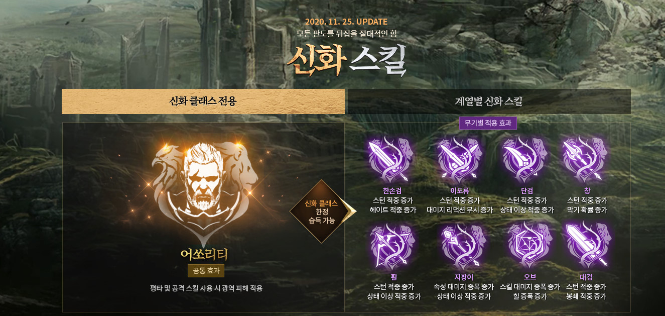 클래스만 신화가 등장하면 섭섭하죠. 현재 리니지2m의 판도를 뒤집을 신화 전용 스킬도 추가가 되었습니다.