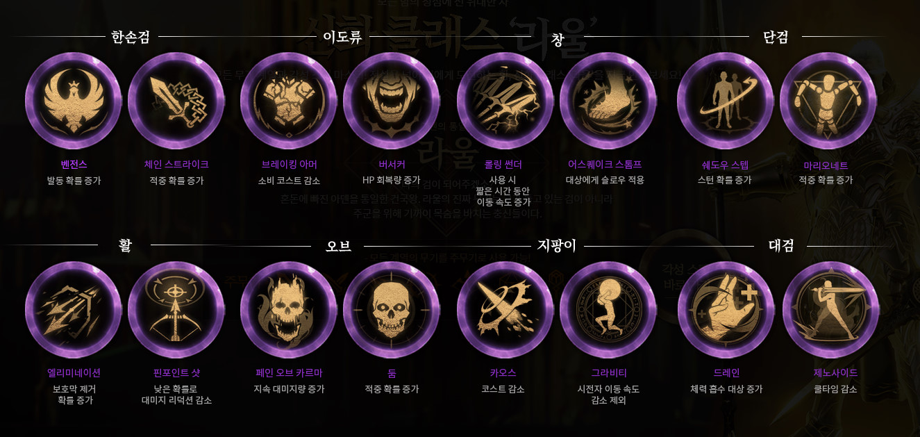 대검 클래스의 특징은 콤보와 스턴 반사인데요. 오크왕 자나크 전설과 전쟁의 파괴자 아그문, 라그라족의 검 리진, 붉은 망토의 검 로티, 카디프영주 크세르스 영웅이 공개되었습니다. 대검클래스의 부 무기는 창이라고 합니다. 주요 스킬은 배쉬가 있는데. 고급,희귀,영웅 모두 확률 스턴이 있고, 리플렉트 스턴 스킬은 스턴 1회 방어와 방어 성공시 스턴 반사 까지 있습니다.