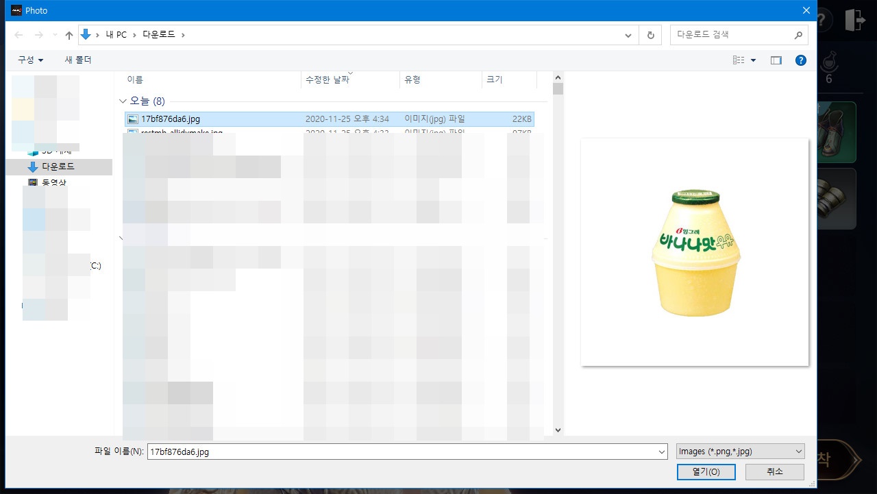 저는 바나나맛우유 사진을 올려놨는데요. 변경하는 곳에서 '사진 추가' 를 선택해주시면 아래와 같이 나옵니다.