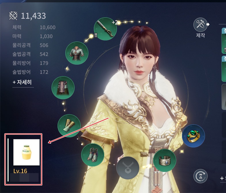 게임 안에서 메뉴를 열어 - 캐릭터 - 장비로 들어가줍니다.