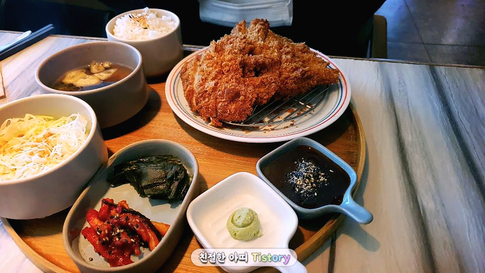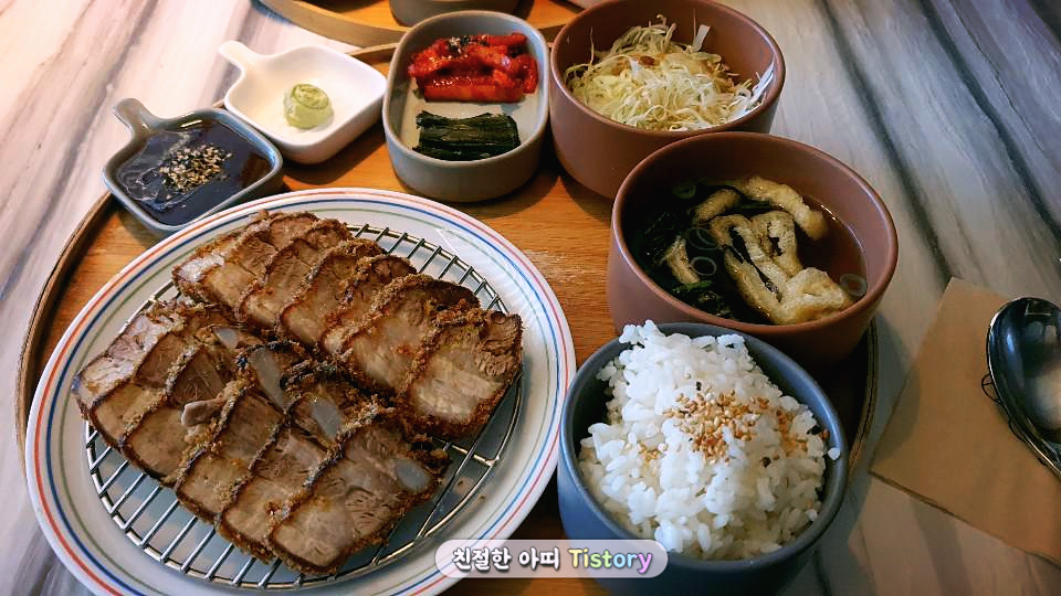 아띠는 차슈 카츠 정식을 주문하였습니다. 차슈는 라멘에 들어가 있을 때만 먹어봤는데. 정식으로 따로 나오기도 하고, 이중 생업의 대표 메뉴로 지정되어 있어 먹어보고 싶었습니다.