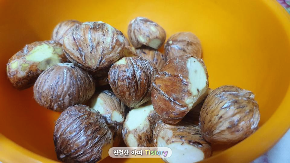 저희 집은 밤을 까고 나서 가볍게 삶아서 물기를 제거했습니다.