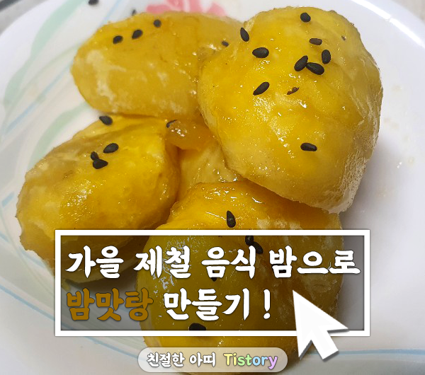 제가 정말 좋아하는 가을 제철 음식이 하나 있어요. 바로 '밤'이에요. 집 뒷산에도 많아서 가을이 되면 자주 줍줍~해서 밤밥도 만들고~ 군밤~ 삶은 밤~ 밤 조림~ 여러 가지 밤 요리를 해 먹는데요. 오늘은 그중에서도 가장 제가 좋아하는 '밤맛탕' 만들기에 대해 글을 써보려 합니다. 정말 쉽고, 간단해요!!