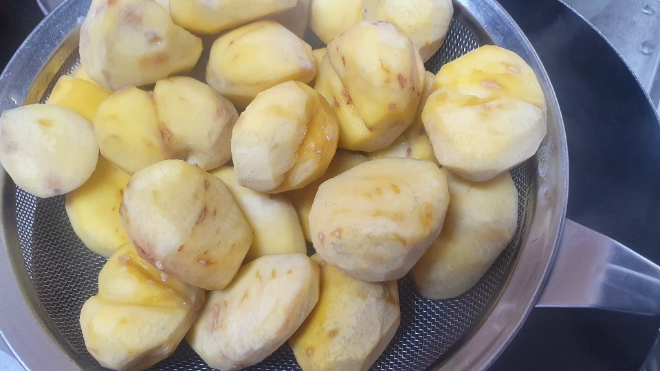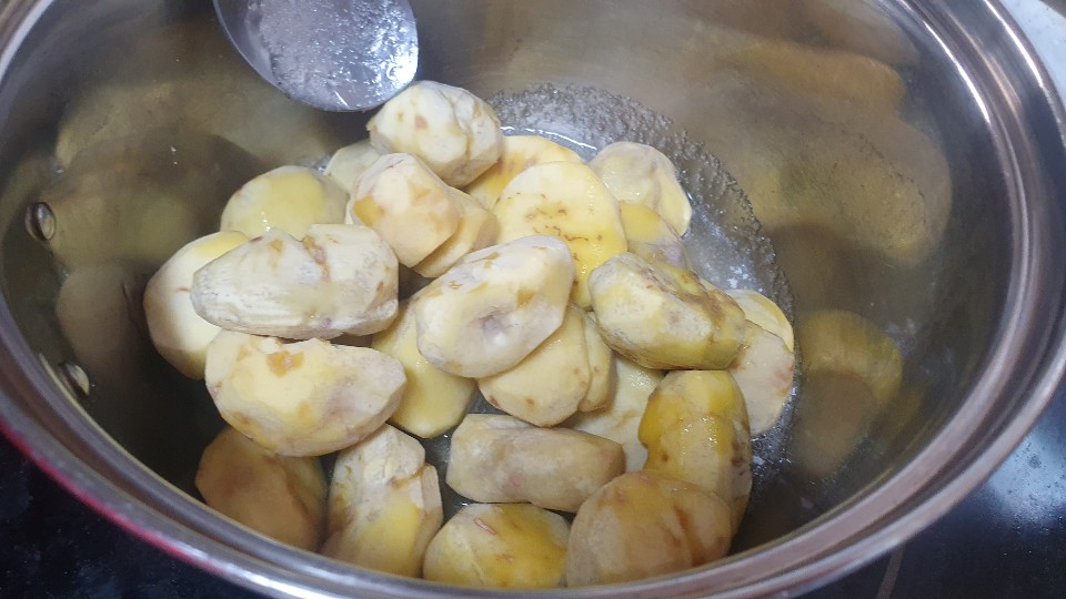 밤을 다 깠다면, 이제 준비를 하면 되는데요, 집집마다 하는 방법이 조금씩 차이는 있으나, 이색적으로 하는 게 아니라면 일반적은 밤 맛탕의 조리방법은 비슷비슷합니다.