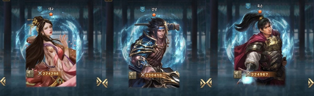 오나라 0~0.5티어에 해당하는 대교, 감녕, 육손