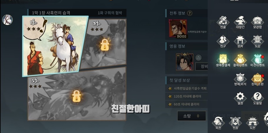 ※ 2막 1장 2화 보상에서 10회 장비뽑기를 줍니다.