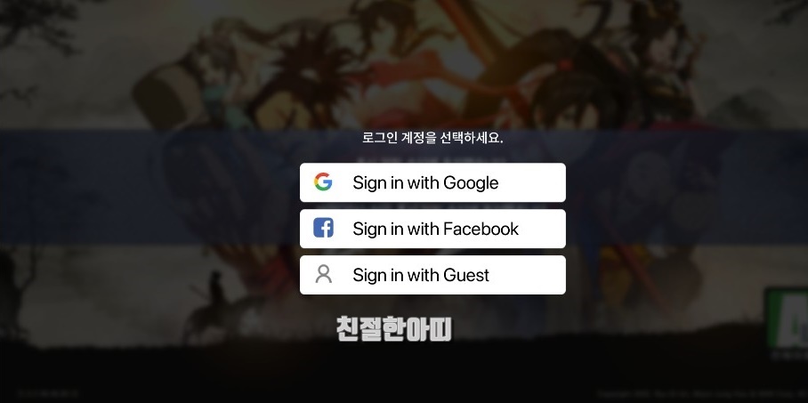 1. 로그인 계정 '게스트 아이디' 선택해주세요.