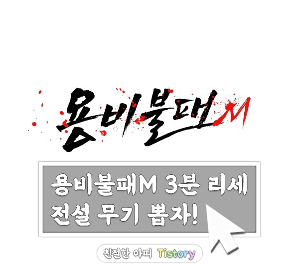 신규 모바일게임 '용비불패M 3분 리세마라' 방법에 대해 알려드리겠습니다. 좀 더 빨리 하신다면, 2분 10초? 정도면 가능한거 같습니다. 용비불패M은 게임 진행을 수월하게 하려면 '전설 전용 장비' 중에서도 '무기'가 필수로 하나 이상은 있는게 좋습니다.