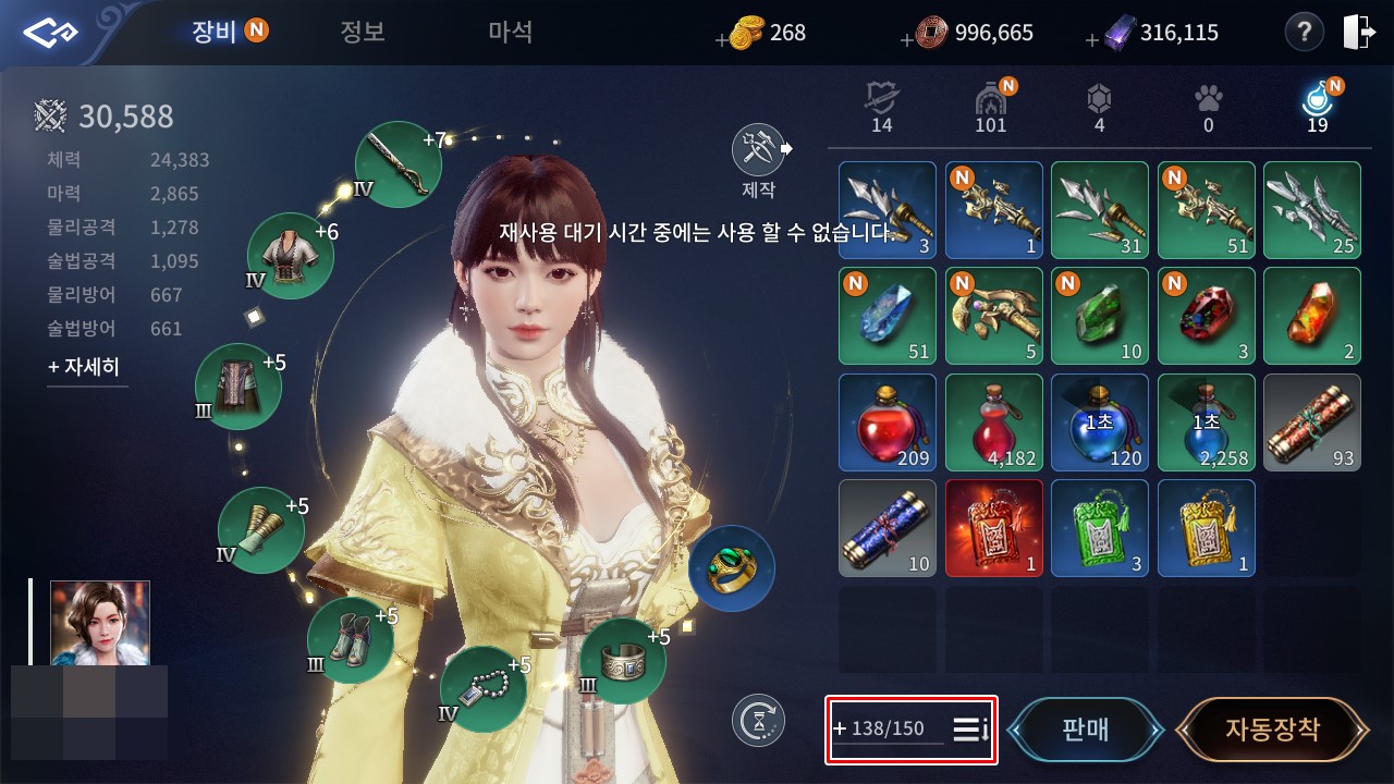 미르4 기본 제공해주는 가방이 150칸 입니다. 그런데 재료가 너무 많아서 재료만 100개 이상 차지를 하게 됩니다.