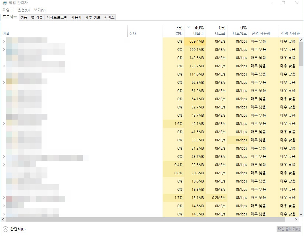 프로세스에서 'discord' 관련 이름의 프로그램이 돌아가고 있다면 우클릭하여 다 종료 해주시면 됩니다.