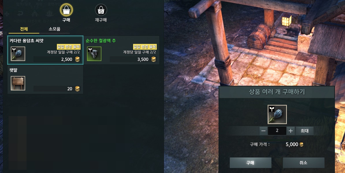 씨앗 상점을 보면 계정당 일일 구매 횟수가 제한되어 있는데요.