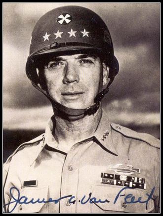 밴 플리트 장군은 '북한의 남침'에 의해 일어난 6.25 전쟁에 제8군을 지휘로 1951년 4월 참전하게 됩니다. 중국 인민지원군의 물량공세 때문에 고전을 하던 시기였는데. 밴 플리트 장군은 포병들의 탄약통제보급율을 5배로 늘려서 중국군을 그냥 쓸어버리게 만듭니다. 그리고, 한국군의 양적, 질적 향상을 위해 미국 웨스트포인트의 교육훈련제도를 도입한 4년제 육군사관학교를 재창설하게 되어, 현재 한국군의 아버지로 불리고 있습니다.
