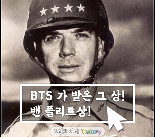 며칠전에 BTS(방탄소년단)이 밴 플리트상을 받은 것에 대해 많은 곳에서 이슈가 되었죠. 특히나 중국의 반응이 아주 그냥 뭐 같은 반응이였죠. 사실 밴 플리트상이 무엇인지에 대해 저도 모르고 있었고, 이번 기회에 알게 되어 포스팅을 통해 1번 더 복습도 해보고 모르는 분들께 알려드리고자 합니다.