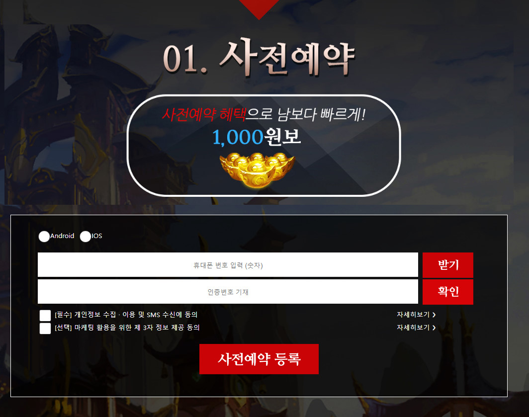 하늘무사 사전예약은 공식페이지에서 진행되며, 보상 혜택으로 1,000원보를 받을 수 있습니다. 공식 카페에서는 추첨 문상지급 등 sns 홍보와 같은 이벤트가 한참~ 진행중이니 방문하시어 참여해보시면 좋을거 같습니다.