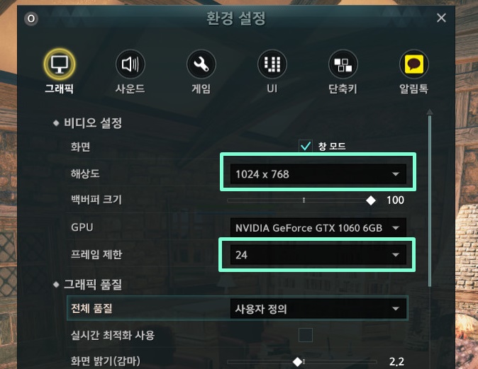 그래픽 설정 / 컴퓨터 렉 줄이기