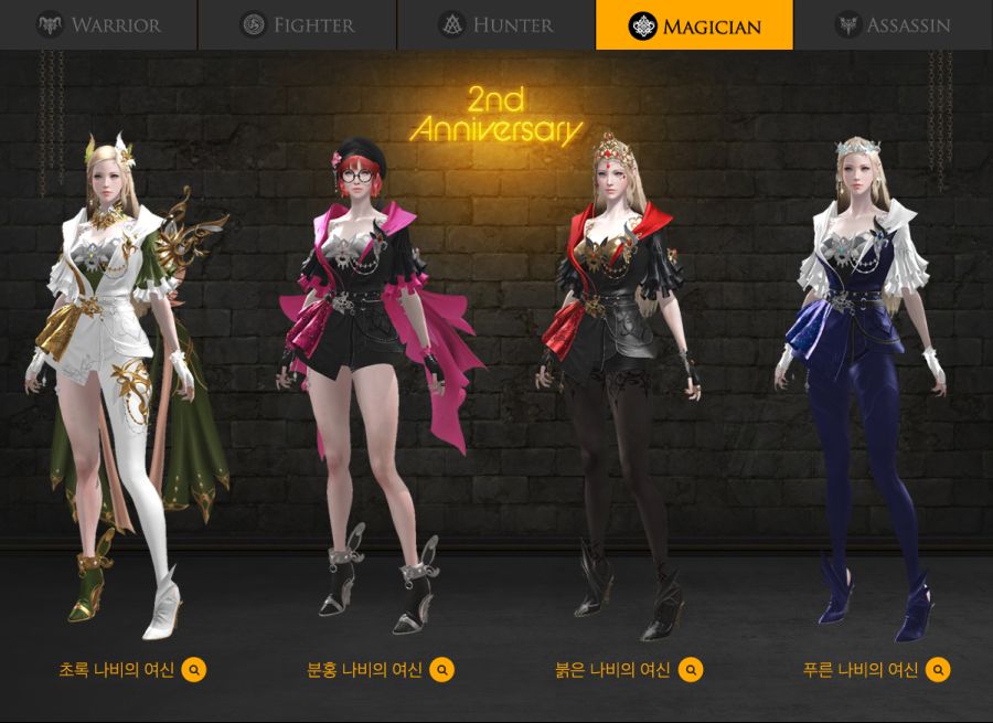 실린 마법사 아르카나 / 서머너 / 바드 2주년 아바타는 초록 나비의 여신 / 분홍 나비의 여신 / 붉은 나비의 여신 / 푸른 나비의 여신으로 있는데. 초록나비에서 푸른 나비로 갈수록 주렁주렁 달고 있는 파츠가 줄어드는게 특징입니다. 살랑살랑 흔들리는 옷 자락을 싫어하시는 분들은 붉은 나비 or 푸른 나비를 받으시면 되겠습니다.