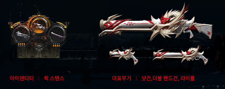 건슬링어는 세 가지 총기를 사용하여 빠르게 움직이며 스타일리쉬한 전투를 펼치는 원거리 클래스 입니다.