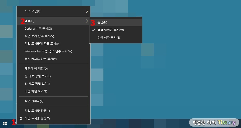윈도우10을 사용하다보면 검색창이 아~~~~~주 크게 펼쳐져 있는게. 보기 싫어서 숨기겨서 없애거나 축소시키고 싶은 분들이 계실거예요. 특히, 윈도우7을 사용하다 넘어오신분들이 더 그러실텐데요. 작업표시줄 검색창을 숨기기가 가능한데요. 방법에 대해 알려드리겠습니다.