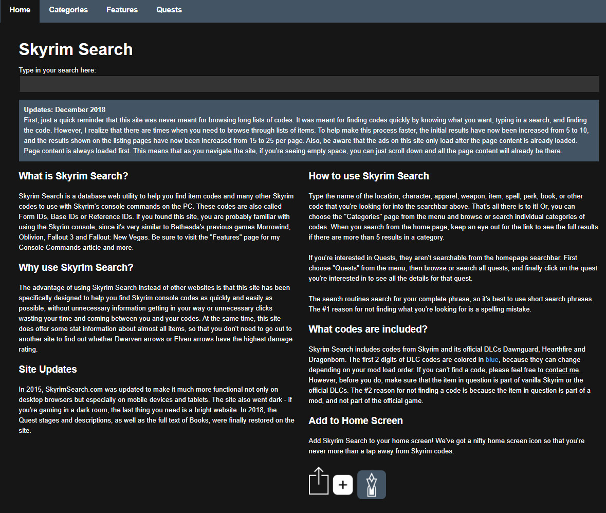아래의 사이트가 대표적인 스카이림서치 라고 하는 모든 코드명을 찾을 수 있는 곳 입니다.
