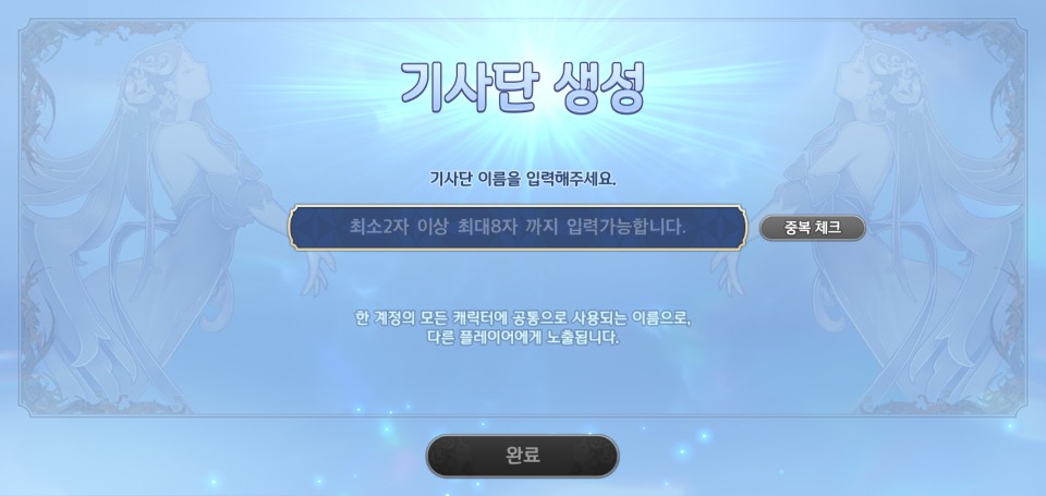 2. 스토리 진행하다보면, 기사단 생성을 하게 됩니다.