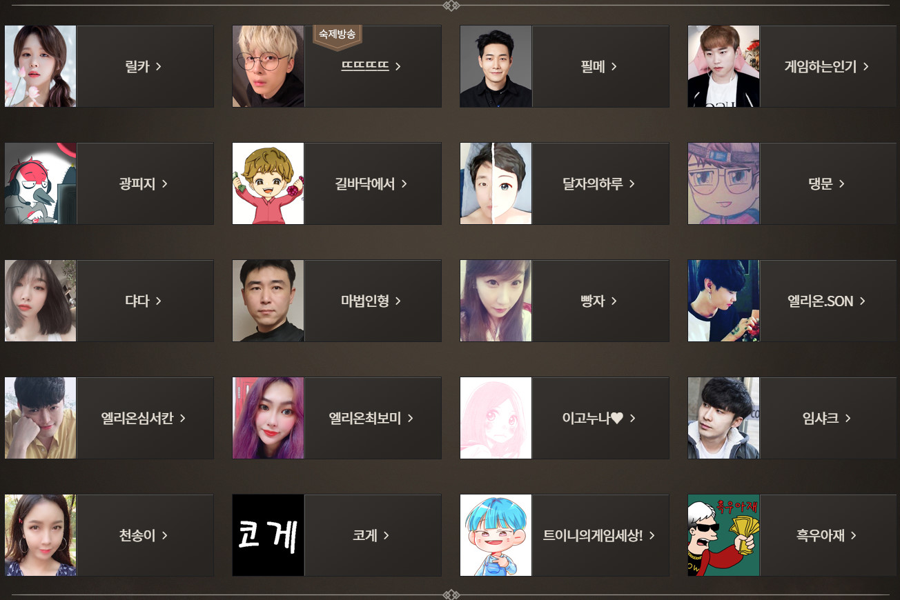 슬레이어 사전 플레이를 하게 되는 크리에이터는 총 20명 입니다.