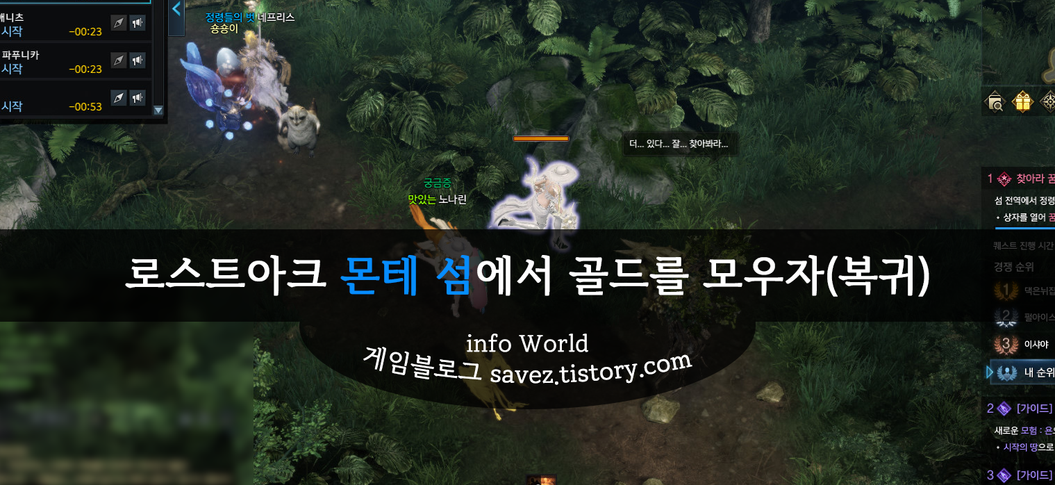 섬 마음도 이유가 되겠지만, 무엇보다 골드 때문에 가야합니다. 예전에는 로스트아크 골드를 아바타, 배틀 아이템 구매 에만 쓰였지만 지금은 아이템 강화에 들어가더라구요. 그래서 인지 골드를 주는 콘텐츠가 많아졌는데 그 중에 쉽게 모울 수 있는 곳 중 하나가 바로 몬테 섬이라고 해요!