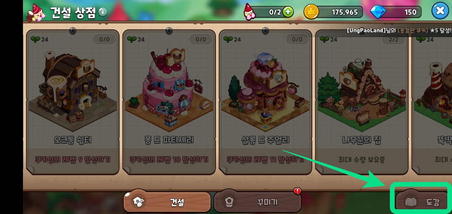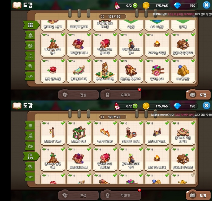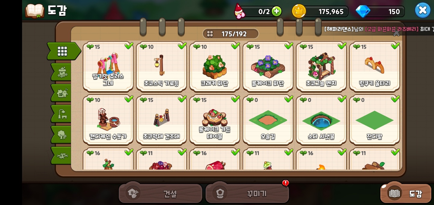 꾸미기 도감에 들어가면 내가 지금까지 건설 / 배치한 건물들을 확인 할 수 있어요.