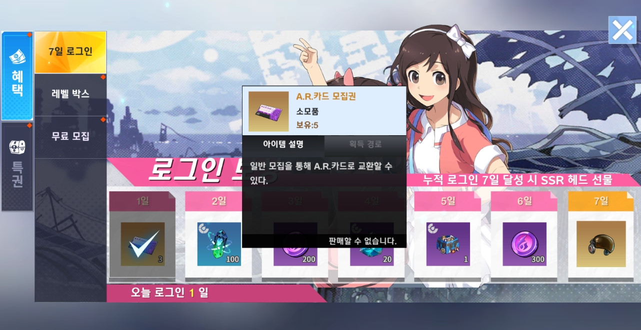 3. 레벨박스, 7일 로그인, 7일 임무 보상 등 받을 수 있는 보상 다 받기