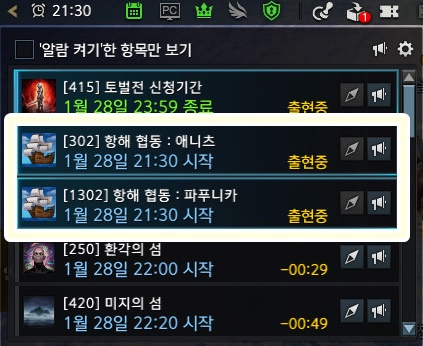 항해 협동 이벤트는 파푸니카와 애니츠 2 곳에서 동시에 진행이 됩니다.