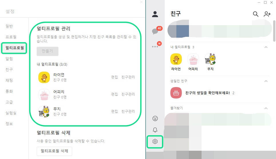 만드는 방법 : 카톡 톱니바퀴(설정) 클릭 → 멀티프로필 → 만들기