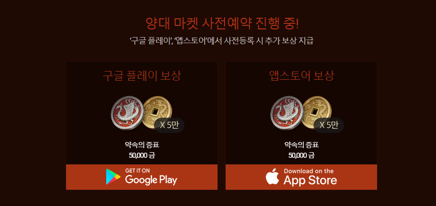 별도로 구글플레이와 앱스토어에서 사전등록하시면 약속의 증표와 5만금을 받을 수 있으니 꼭 등록하시기 바랍니다. 사전등록하시면 출시에 맞춰서 앱에서도 알림이 오는거 아시죠?