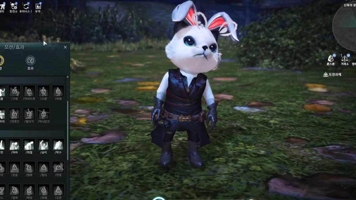 구성품 : 접힌 토끼 귀, 스티커 : 아기 토끼귀, 소셜 : 두리번, 발자국 : 빛의 흔적, 이동 및 대기 : 신나는 발걸음