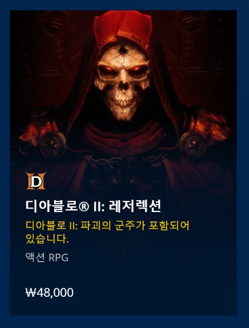 다아블로2 리마스터 / 레저렉션의 가격은 확장팩 파괴의 군주를 포함한 48,000원으로 배틀넷을 통해 구매 할 수 있습니다. pc버전과 콘솔버전이 2021년 중 출시 될 것 이라고 하는데. 늦여름이나 초가을쯤이 아닐까 예상됩니다.