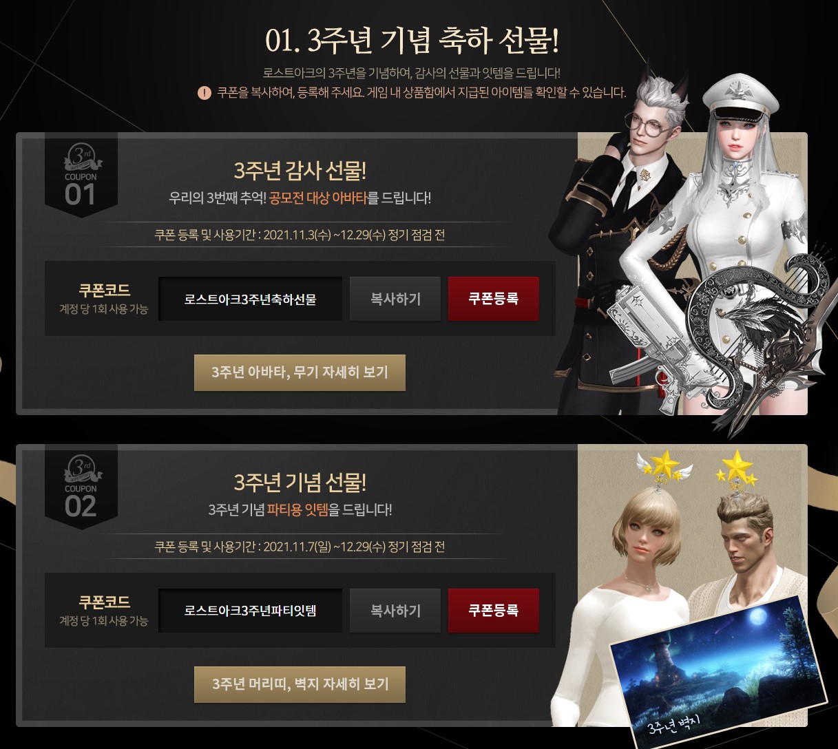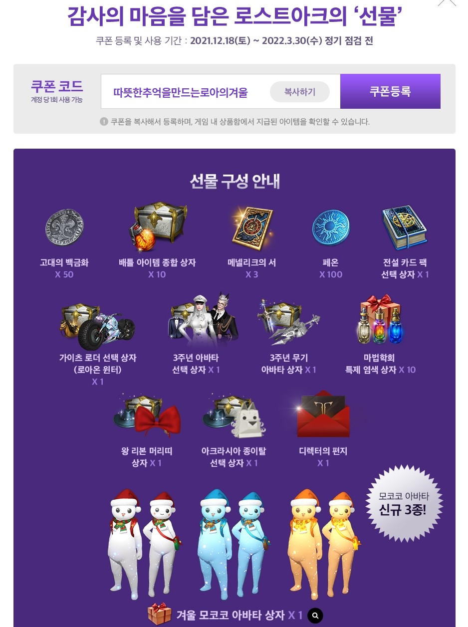 쿠폰코드 : 로스트아크3주년축하선물