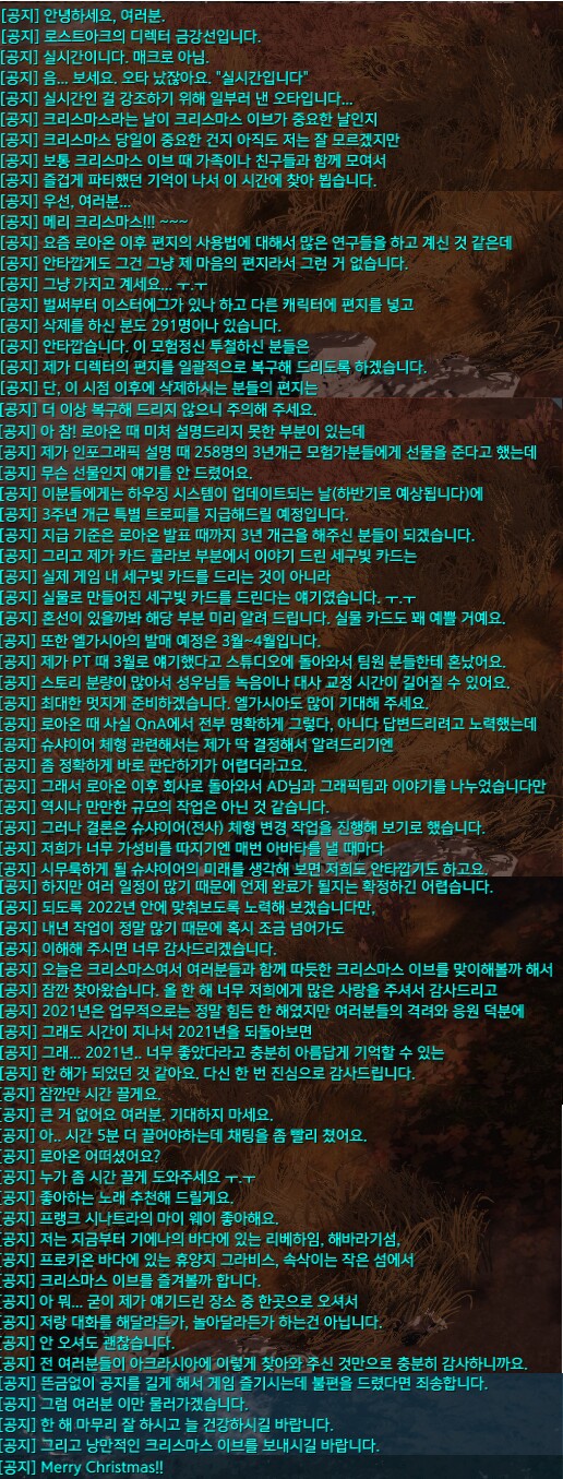 크리스마스에 깜짝 등장한 금강선(빛!) 디렉터의 공지 전문