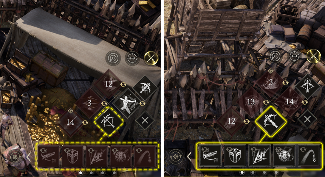 - 스킬 선택 후 장착할 슬롯을 선택하여 스킬을 장착할 수 있습니다.
