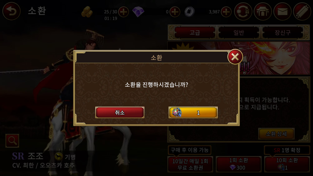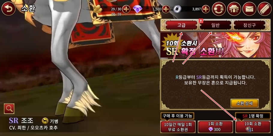 3. 소환 → '고급' 소환 10회를 사용합니다.