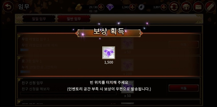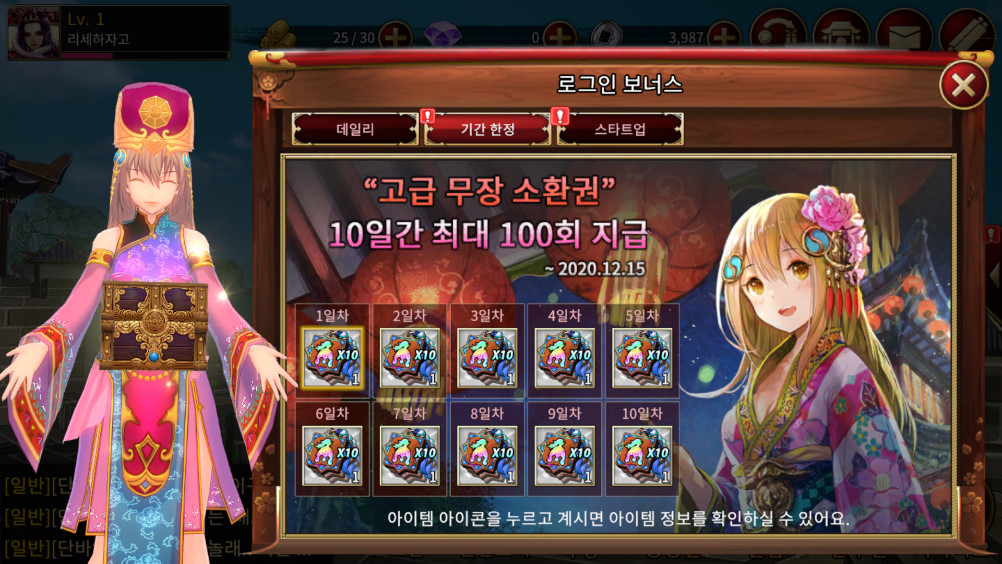 5. 튜토리얼이 끝나셨다면, 로그인 보너스를 받아줍니다.