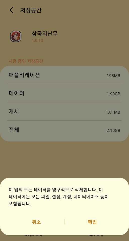 1. 설정 → 애플리케이션 → 삼국지난무 (검색하시거나, 찾아주세요.)