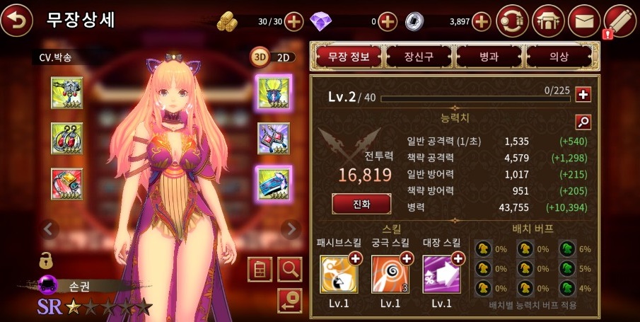 처음 10회 뽑기와 고급 10회 뽑기에서 SR등급의 원하는 무장들을 뽑으셨다면 아까 1500 휘석을 이제 장신구에 투자하셔야 합니다.