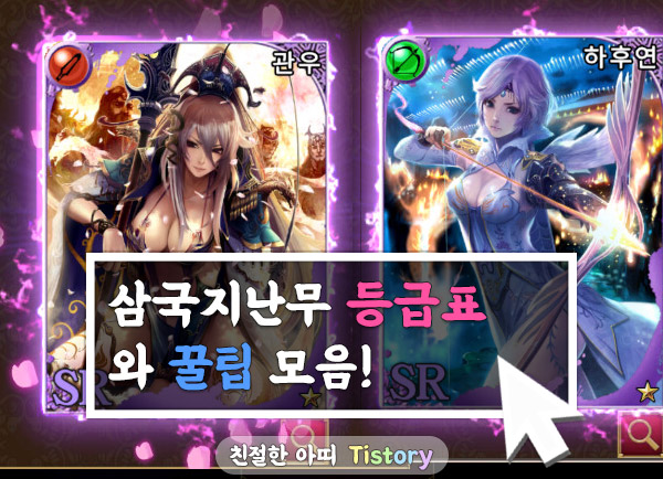 삼국지난무 리세마라 공략을 작성하고 아띠 역시 게임을 즐기면서 게임 정보들을 찾아보았는데요. 티어 등급표와 게임 진행하면서 겪었던 내용들로 몇가지 공략 Tip을 작성해보려 합니다.