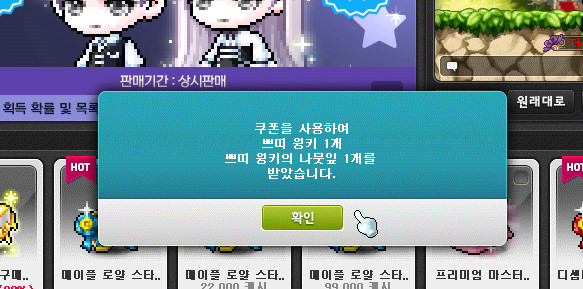 다들 쿠폰 사용하시고 즐겜하세요! 오랜만에 메이플스토리 들어가서 템을 받았네요ㅎ